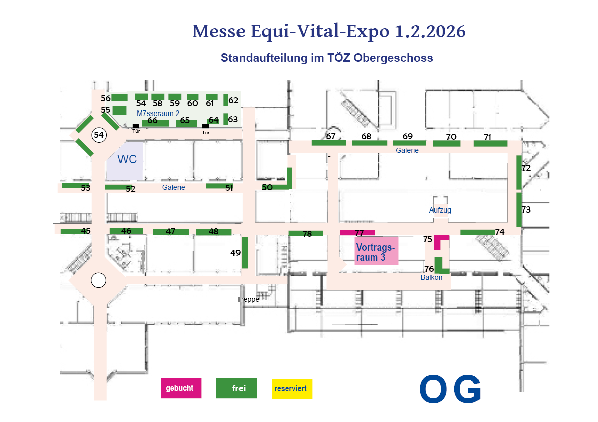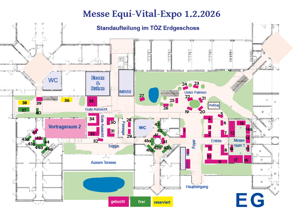 Du möchtest bei der zweiten EQUI-VITAL-EXPO am 01.02.2026 als Aussteller:in dabei sein? Auf dieser Seite findest du eine Standübersicht, die Standpreise sowie ein Link zum Buchungsformular.