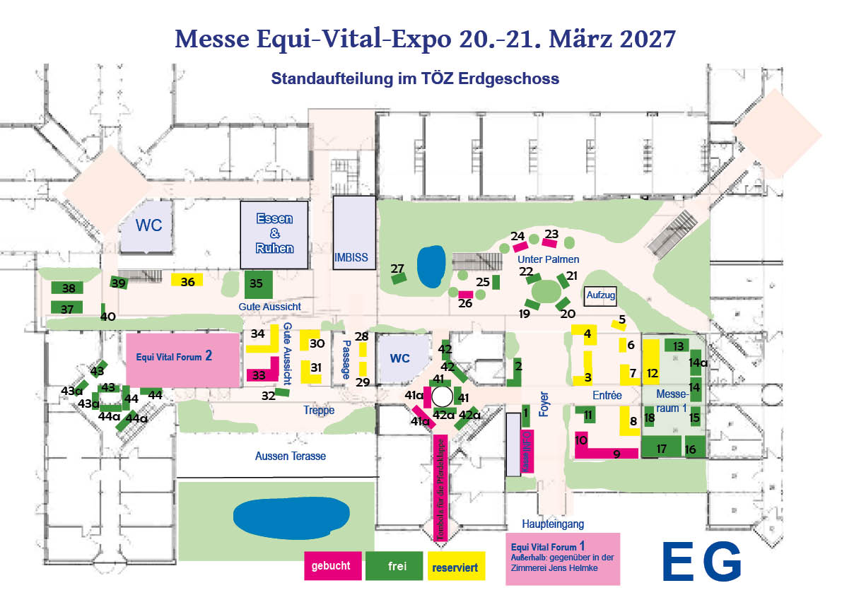 Du möchtest bei der dritten EQUI-VITAL-EXPO am 20. und 21. März 2027 als Aussteller:in dabei sein? Auf dieser Seite findest du eine Standübersicht, die Standpreise sowie ein Link zum Buchungsformular.
